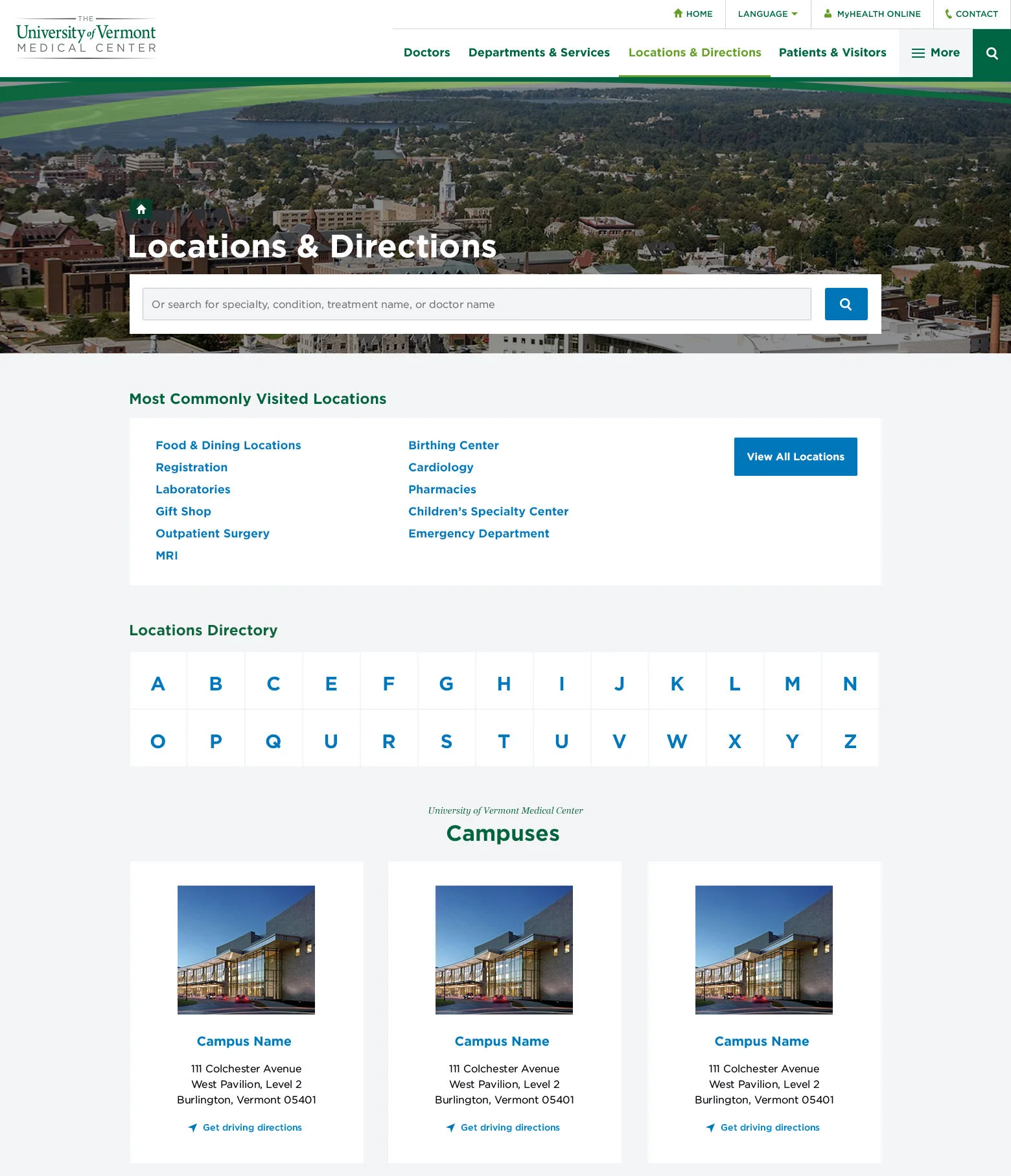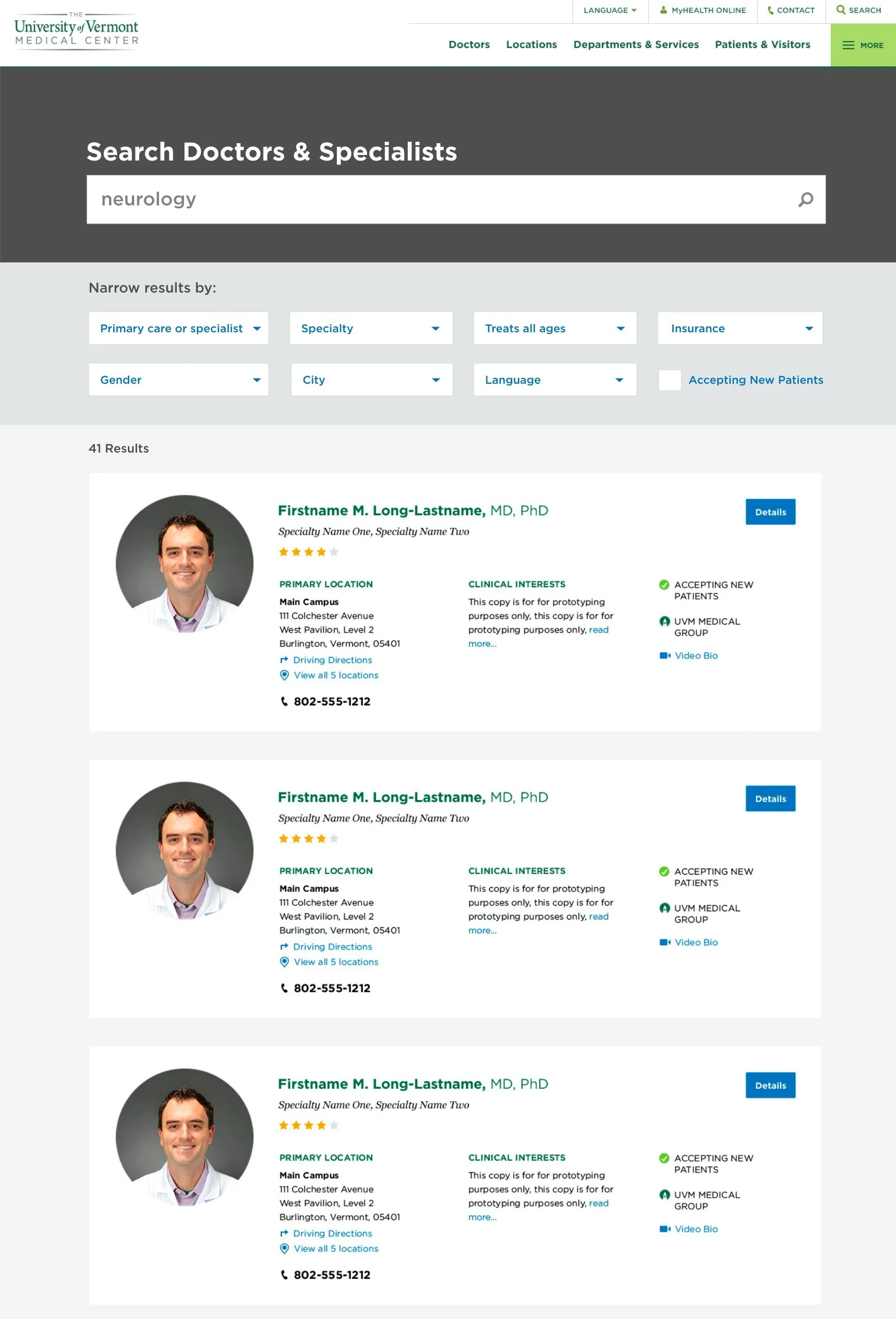 Client: UVM Medical Center • 2015-2017 • My role: UX research & design, information architecture, meeting & process facilitation